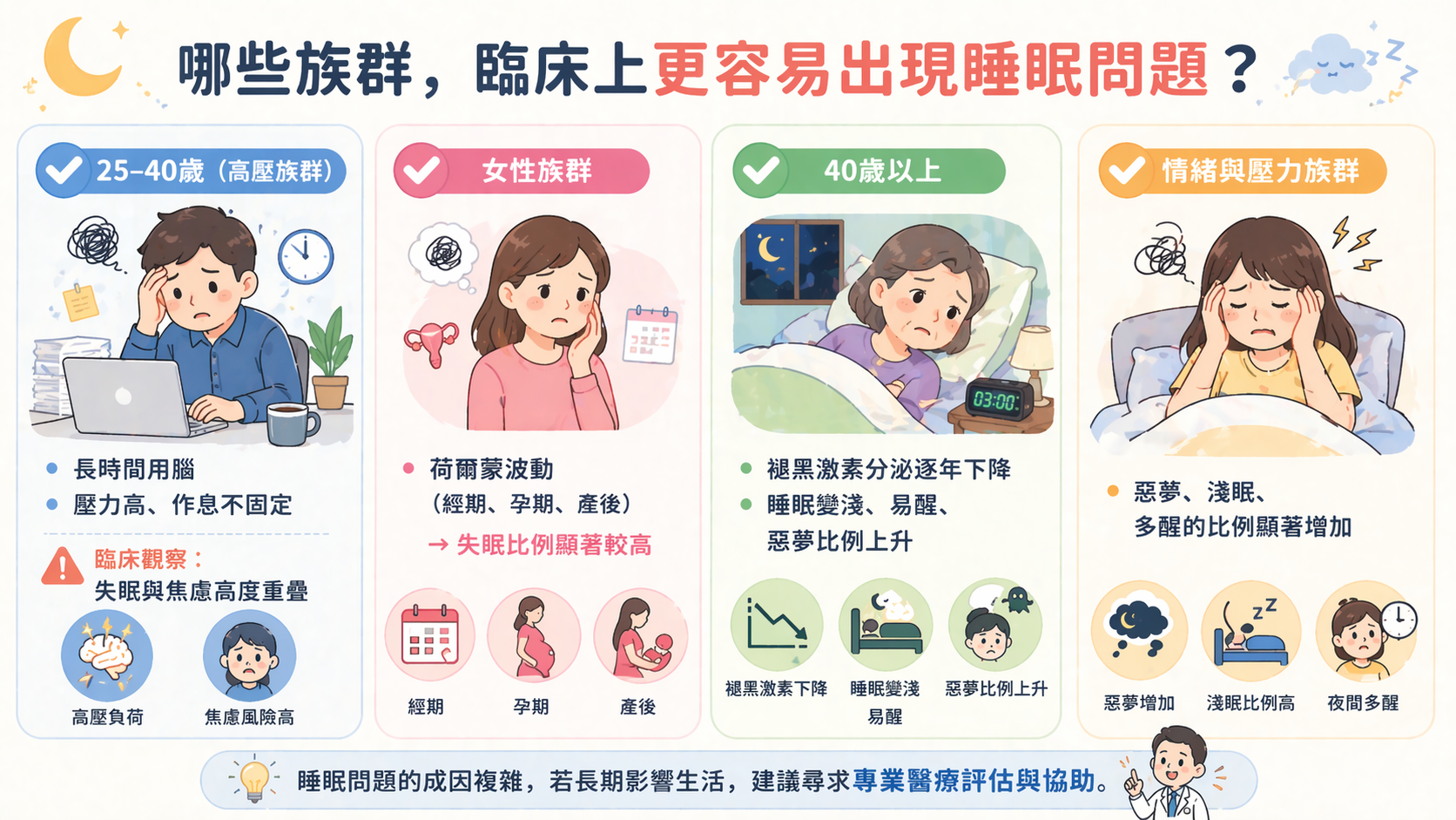 四、哪些族群,臨床上更容易出現睡眠問題?
